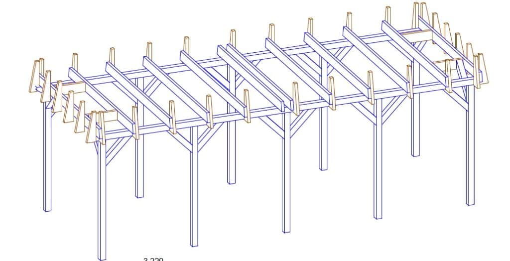 Wir bieten Ihnen ein besonderes Projekt an – eine Carport-Konstruktion, die wir ursprünglich für einen Kunden in einer anderen Holzart gefertigt hatten. Nun haben wir diese Ausführung aus Konstruktionsvollholz Fichte mit verleimten Pfosten für Sie verfügbar.