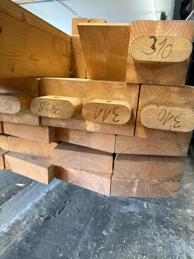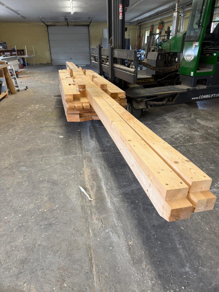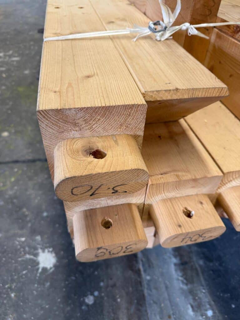 zugeschnittenem und zimmermannsmäßig gezapftem Holz